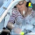 Elle nous montre comment briser la vitre de sa voiture en cas d'urgence