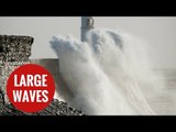 Large waves batter Porthcawl Lighthouse