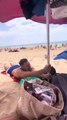Gusty Beach Winds Cause Umbrellas to Take Flight