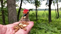 A male Red-bellied Woodpecker grabs a couple of peanuts