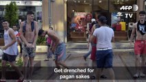 Getting wet at the water festival in Yerevan