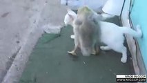Very Funny!! Monkey Donal Playing With Best Friend Kitty Cat In Bed Very Happy