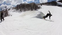After 100cms of fresh snow in a day or so, snowboarding under a chairlift meant the snow and the chairlift were much closer than usual. I said to my friend 20 seconds before to watch out for the chairlifts but I didnt take my own advice. I couldn't have planed it any better if I tried moving my camera from behind me to infront