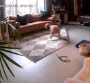 Apollo is running around the house and loses his footing, but makes an excellent recovery by pretending that he was just looking for something under the couch.<br /><br />Apollo is a 6 month old brindle Pit Bull living in San Francisco, and was adopted from a local animal shelter. He was 3 months old at the time that the video was recorded.