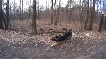 "Helmet to helmet" slow motion dog collision