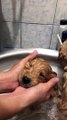 Precious Puppy Takes Her First Bath