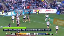 Monebt rugby player slids into squad of Young cheerleaders