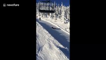Lazy snowboarder takes the drag lift to a whole new level