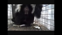 Mother skunk threatens "spraying" to protect babies