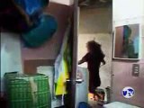 Ella lanza una cuchara de metal, pero manten los ojos sobre el gato… ¡Jamás vi a un gato hacer eso! LOL