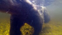 A pair of homeowners in Vancouver, Canada, had a shock when they discovered a black bear taking a dip in their hot tub pool.