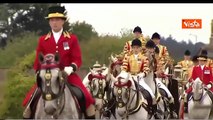 Trump arriva al Castello di Windsor a bordo di una carrozza trainata da cavalli bianchi