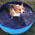 Summer isn't over for this pup! This energetic corgi loves hanging out in the kiddie pool and can't contain his excitement when his owner starts filling it with water.