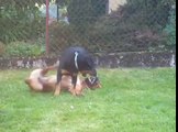 Rhodesian Ridgeback and Sherman shepard Puppys Playing