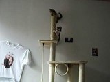 voici Masten qui joue sur son arbre à chats. <br />elle aime faire ses griffes sur la corde. <br /><br />je jouait avec elle en bougeant ma main sous le hamac mais elle a été plus intelligente que moi ; elle a mis sa patte gauche sur le hamac et sa patte droite sous le hamac. <br />mais sous le hamac il y avait ma main et aie mon doigt. <br />elle avait coincé sa griffe dans mon doigt. <br />heureusement la vidéo ne montre pas le sang lol