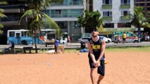 O meia Bruno Paiva bate cobrança de faltas no treino do Rio Branco