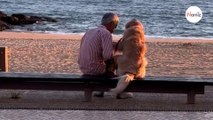 Beach-goer starts crying when she sees what elderly man is doing with his dog
