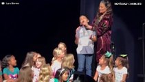 Idina Menzel chama criança no palco para cantar "Let It Go" e surpreende-se