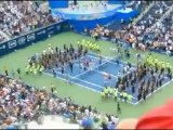 Novak Djokovic celebrates US Open win dancing on court with fan - 2015 HD