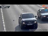 Russian CCTV: Man saves kitten stranded in the middle of busy highway
