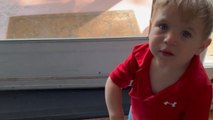 Toddler gets upset after being told he has to leave home without his potty