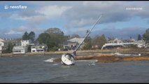 Sailboat blown ashore by bomb cyclone in US Northeast