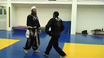Aluf Abir Mori Yehoshua Sofer executes the first 4 Naftali "Deer against a tree" techniques. Deer horns whip away the upper branches while the Deer topples the tree at the lower trunk or roots. <br /> <br />Mori Yehoshua shows how to disrupt the flow of concentration between the tree's upper (head/mind) and lower (body) sections. <br /> <br />This principle is also called short circuiting ''shbasha'' ''hasH'ath daath'' and seperating reference points. When we direct awareness to the top of the tree we attack the lower trunk and when we direct the tree's awareness toward the its roots we attack the treetop. <br /> <br />The Aluf adresses the ''Iwuth'' or sibuv at the tree's ''folding points' 'at various heights and angles.