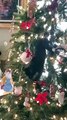 cat climbs all over decorated christmas tree - cat climbing christmas tree | christmas tree cat
