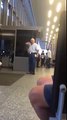 Un vieil homme romantique attend sa femme à l'aéroport avec un bouquet de fleurs. :)