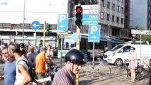 Piazzale Loreto: i ciclisti manifestano dopo i troppi morti sui pedali. Bloccata la strada