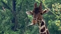 Thirsty Giraffe Catches Rain on It’s Tongue