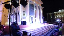 The Ded Moroz comes out with seven snow maidens. Zheleznogorsk, Siberia.