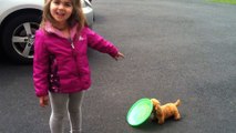 Girl Teaches Toy Dog To Fetch
