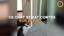 Ce chat se bat contre son reflet !