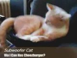 Un chat se bat contre un caisson de basse