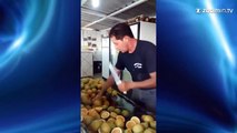 Cet homme possède la précision et la vitesse d'un coupeur de citron professionnel, qui lui a valu le titre de 'ninja du citron'.