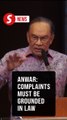 Complaints against government officials must be based on law, says Anwar