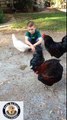 una gallina si fa abbracciare da un bambino