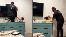 Santa's little helper! Adorable puppy helps owner decorate Christmas tree