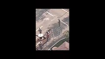 Il se fait trainer par un bus puis écraser par une camionnette et se relève comme si de rien n'était. Surhumain
