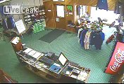 Ce braqueur a cru bon de passer par le plafond... FAUX! Jambe cassée dans sa chute