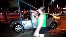 Ômega perde o controle e bate em ponto de ônibus na Avenida Brasil