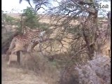 Giraffe kills lion. Giraffe attacks lion pride and kicks one of them to death.