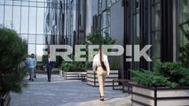 smiling businesswoman riding electric scooter commuting home at downtown area.