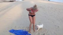Cute Puppy Wants To Get Girl Out Of Her Bikini