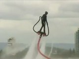 Cool footage has emerged from China of a flyboarding performance, amusing national holiday visitors.<br /><br />The video, captured yesterday in Tianjin Green Expo Garden, shows two men propelling into the air, twirling and saying 'hi' to visitors. <br /><br />According to local reports, the performance attracted lots of tourists to the area.