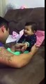 Reaction of a babe his father is shaping his nails