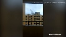 Roof sent flying from winds as it plummets to the ground