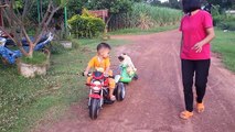 #Very Funny Video# Pug puppy falls off bike, daddy pug doesn't care
