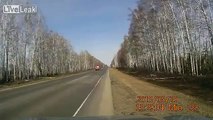 Russian police car pulls out in chase of vehicle with sirens on, doesn't look right... gets smashed by on-coming vehicle as it crosses the highway.